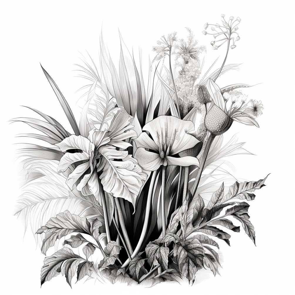 1. Captivating Monochrome Detail: Explore the beauty of rare plants through these carefully crafted black and white illustrations that highlight the elegance and simplicity of nature.